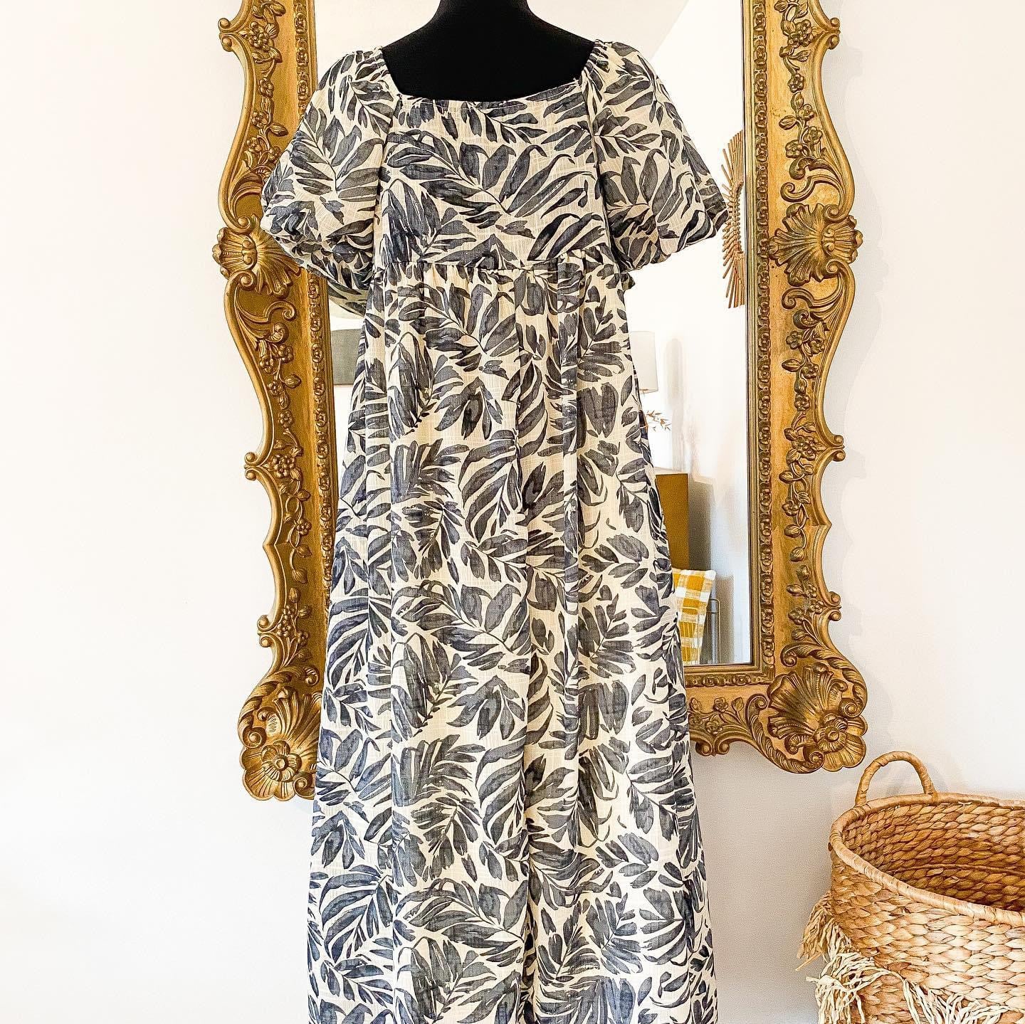 The Baylor Palm Leaf Maxi Dress in Ivory