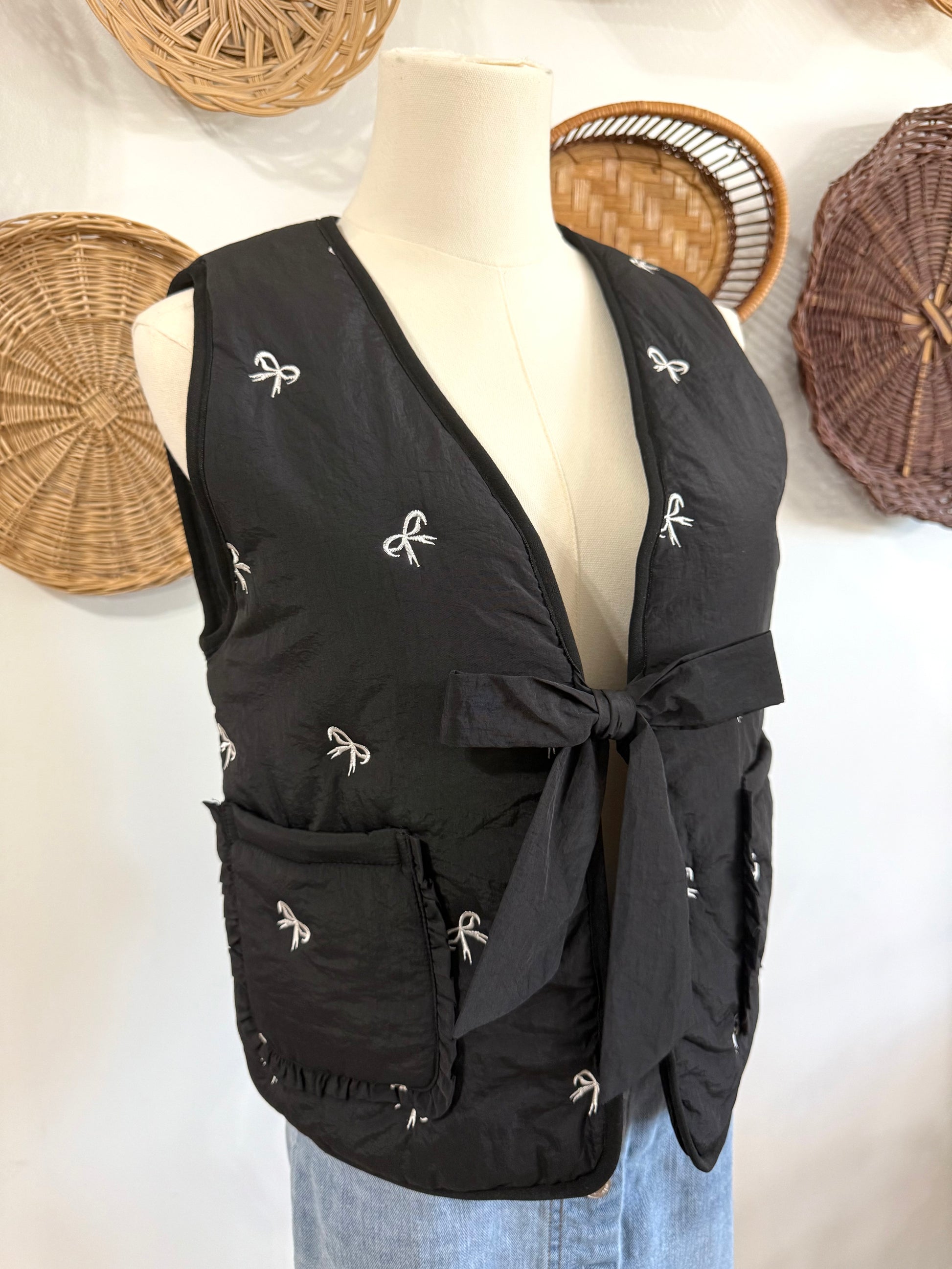 The Harmony Bow Embroidered Vest In Black