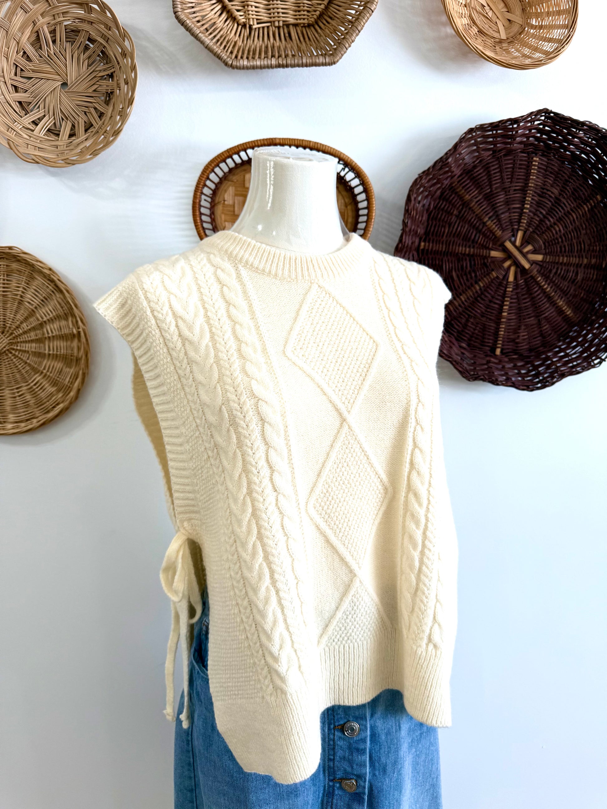 The Joya Side Tie Sweater Tank in Ivory