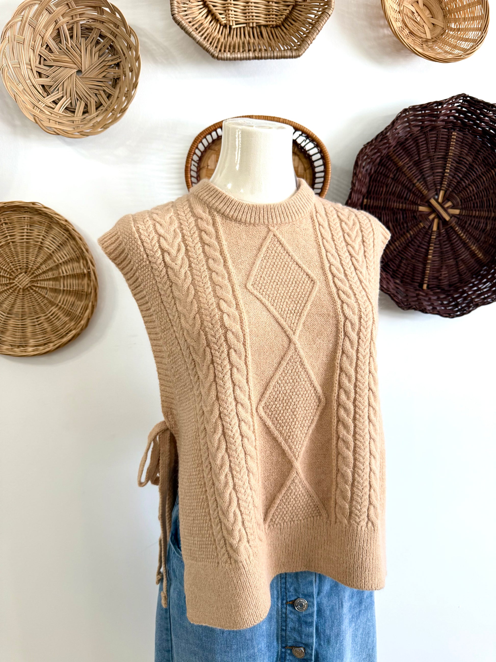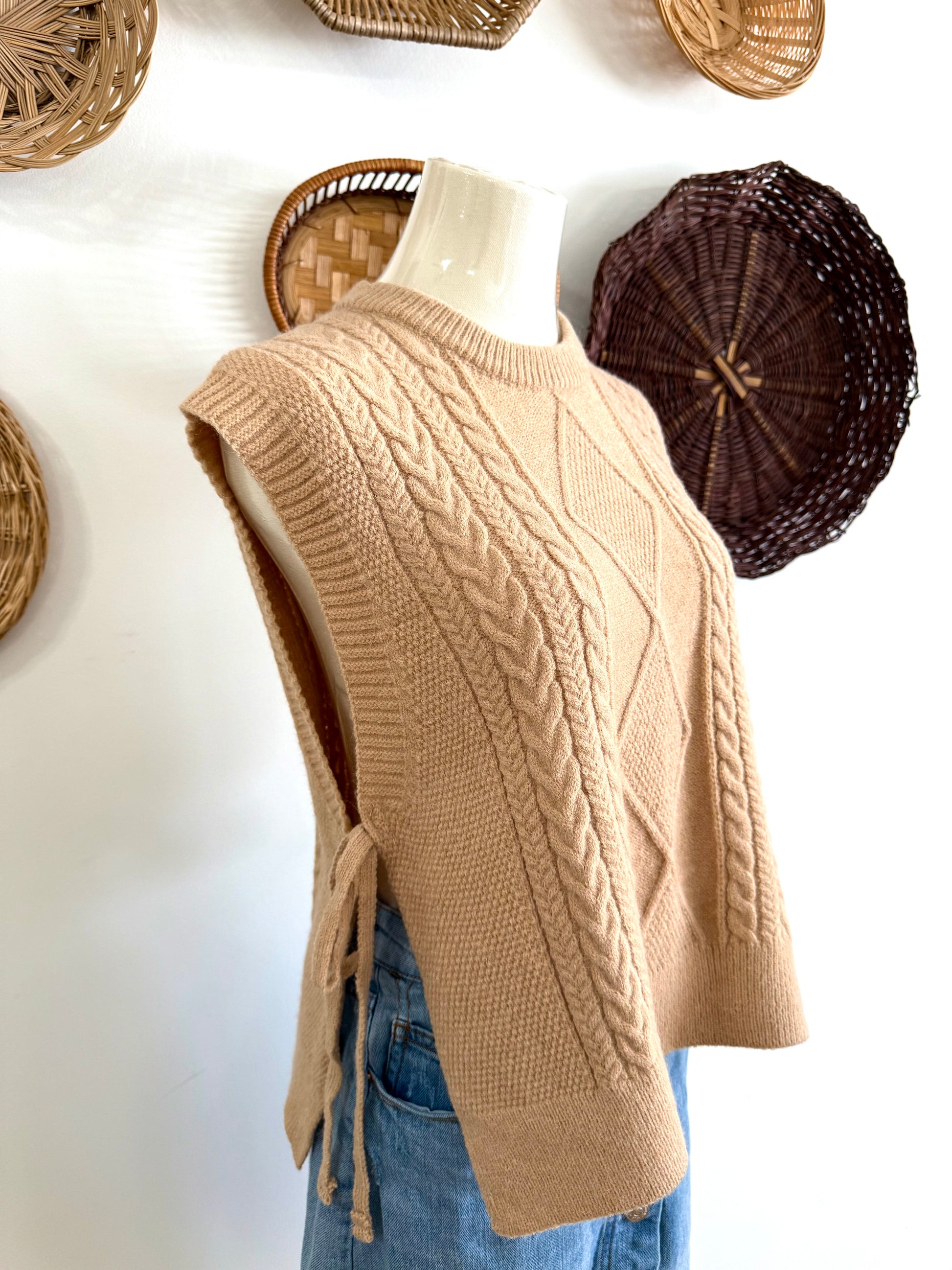 The Joya Side Tie Sweater Tank in Tan