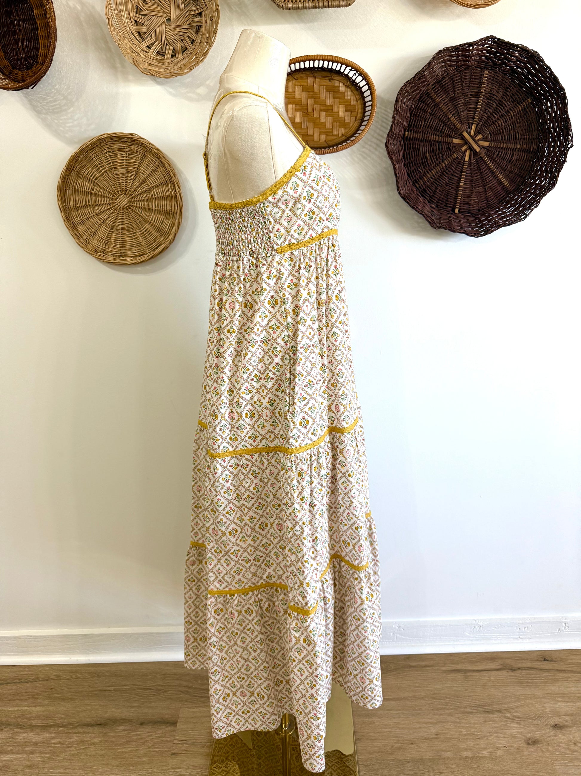 The Leah Floral Tiered Maxi Dress in Yellow
