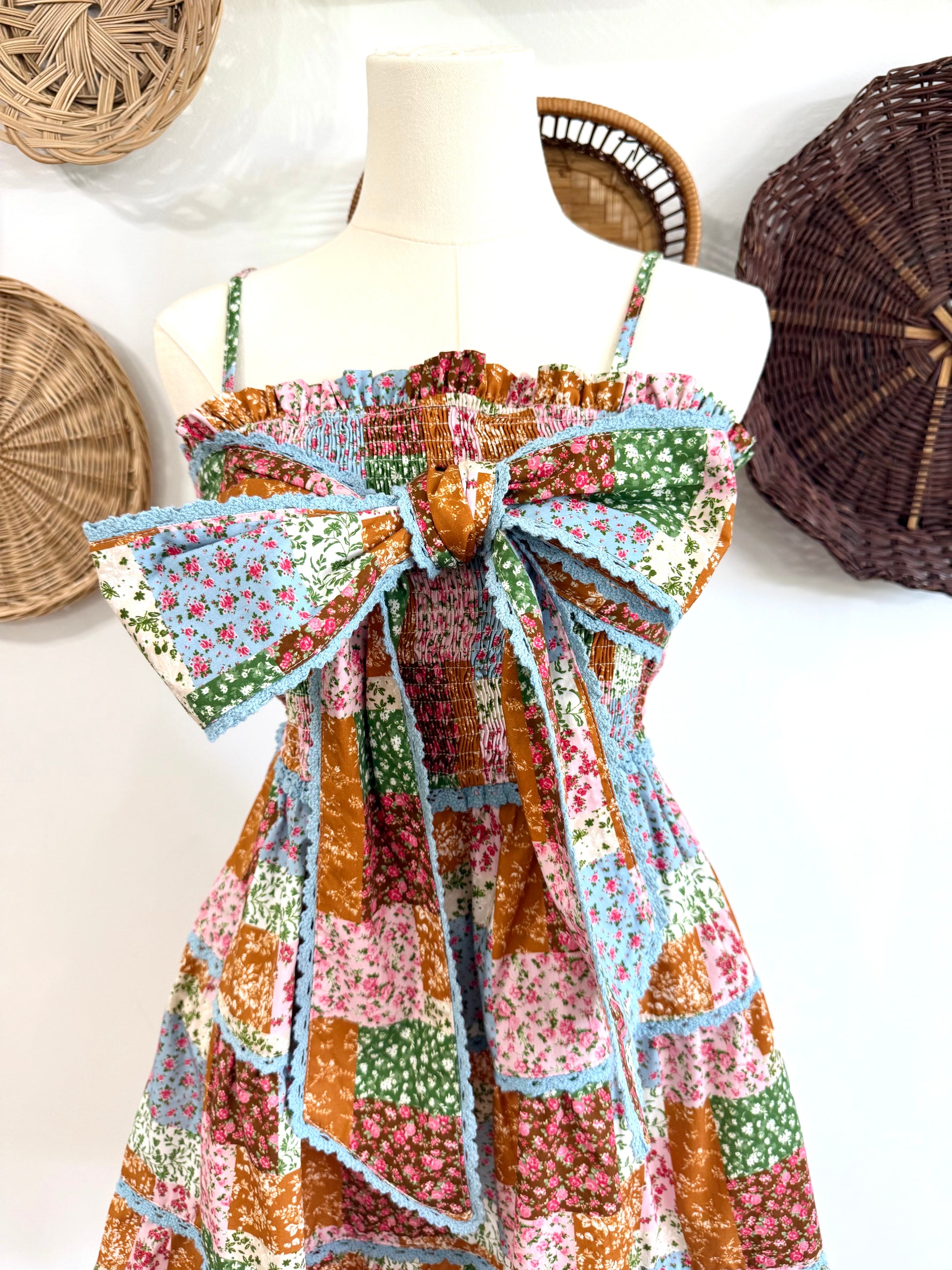 The Ramsey Quilt Patchwork Print Dress with Ric Rac Bow Detail