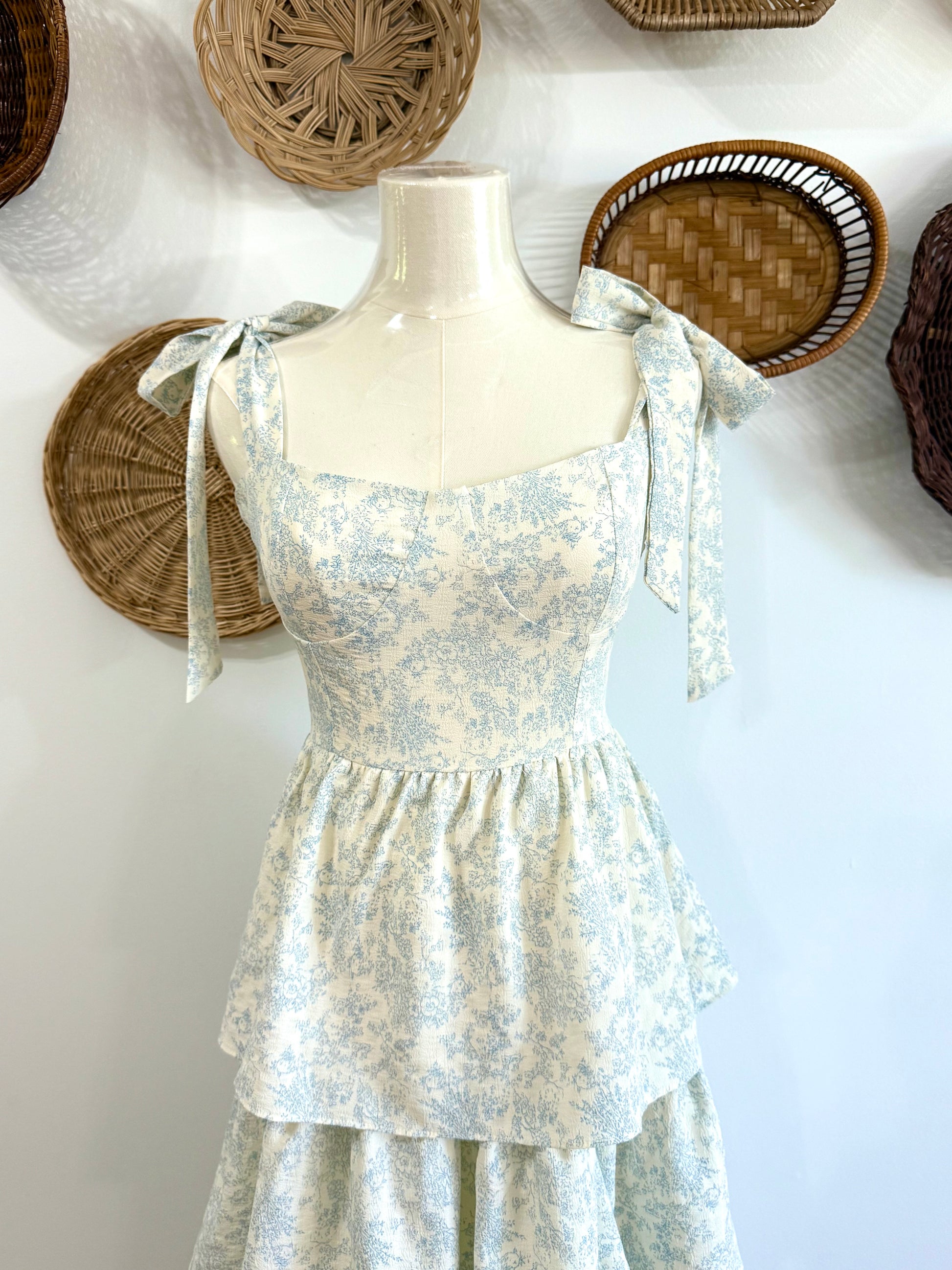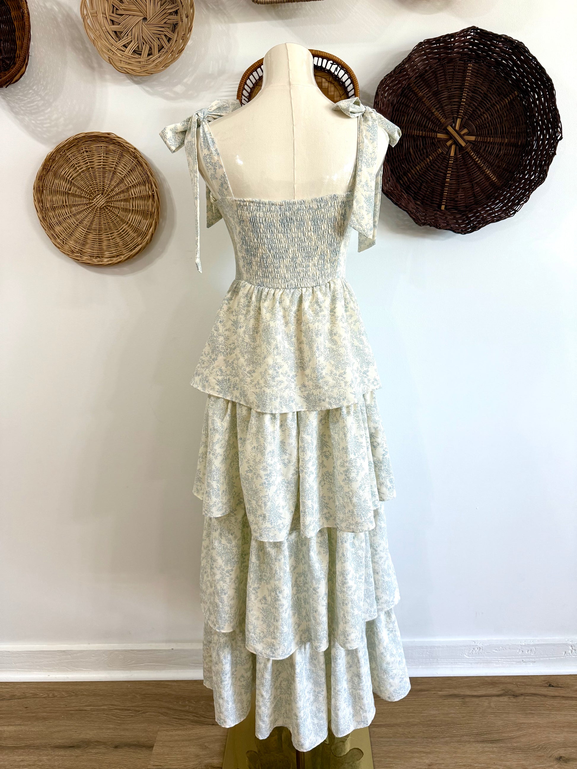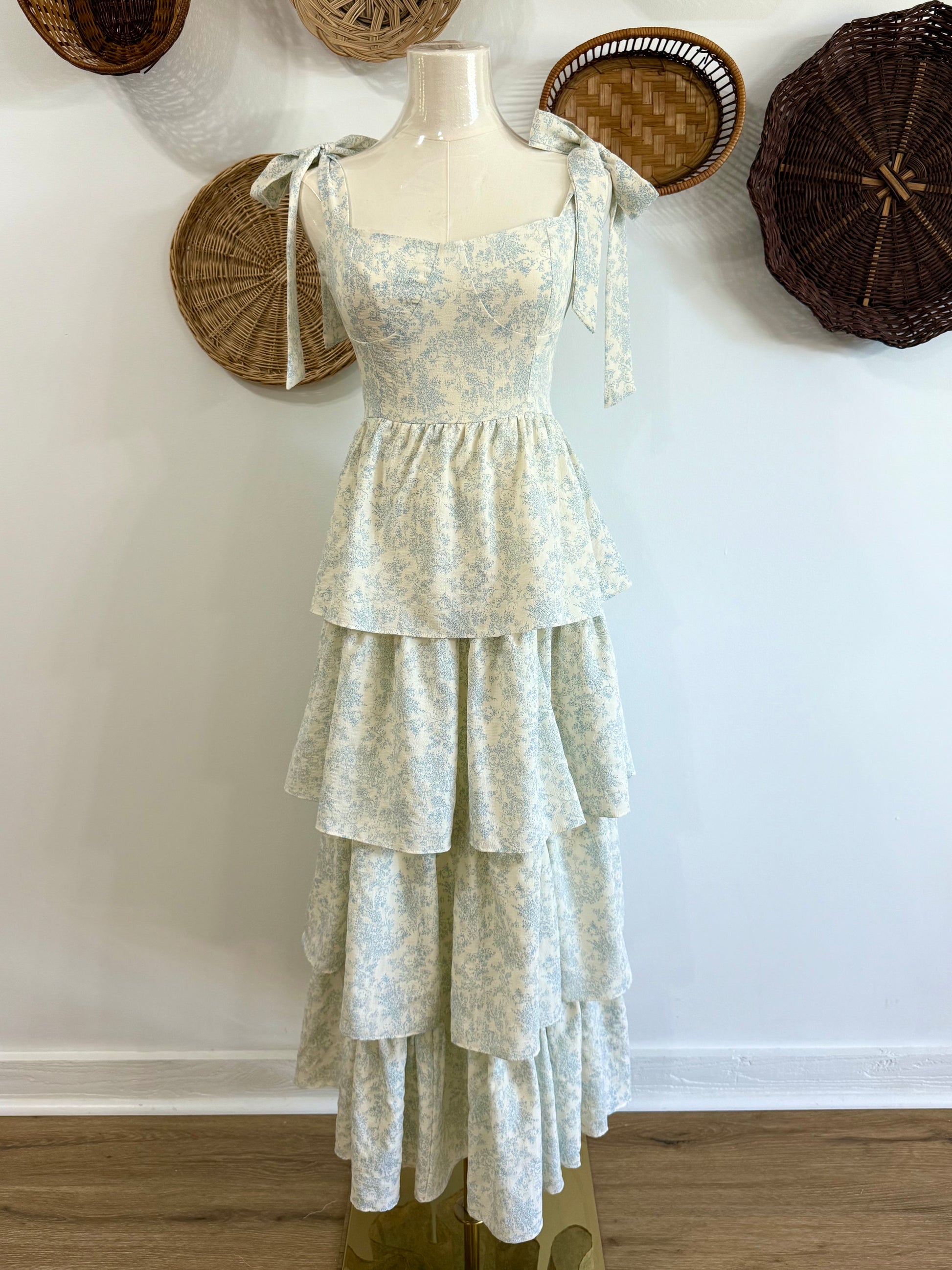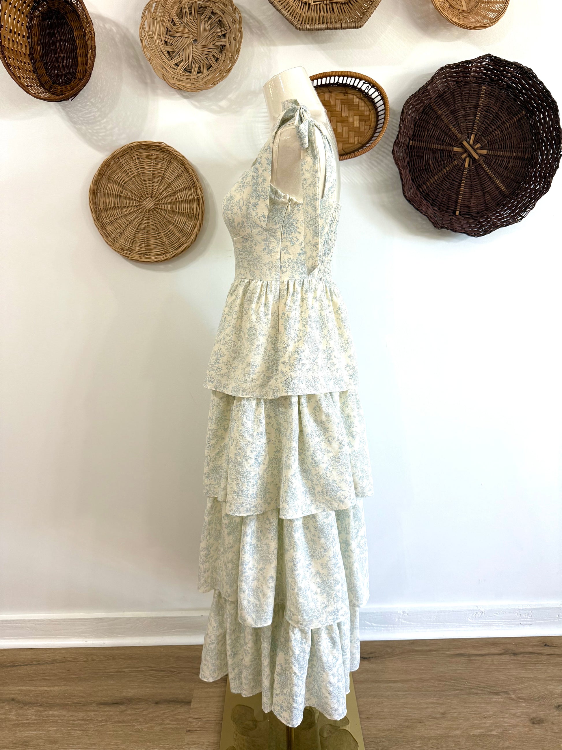 The Shae Floral Ruffle Tiered Maxi Dress in Blue & White