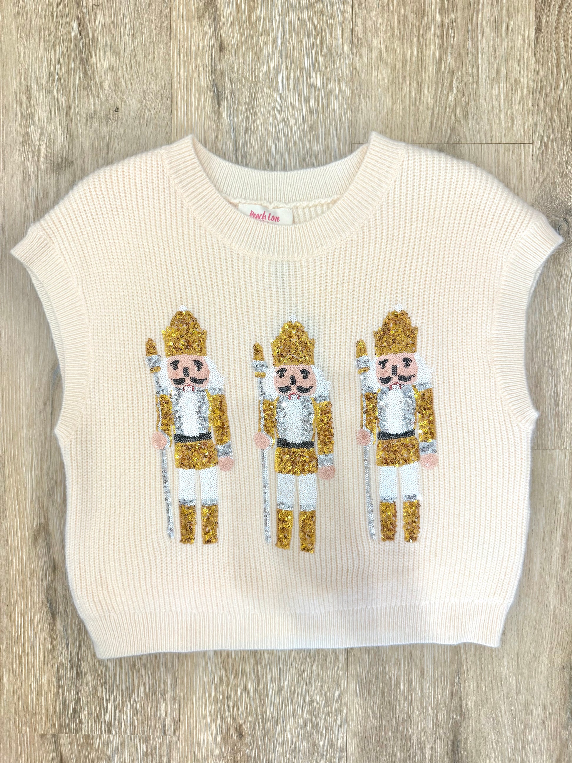 The Tinsel Sequin Nutcracker Sweater Vest in Cream