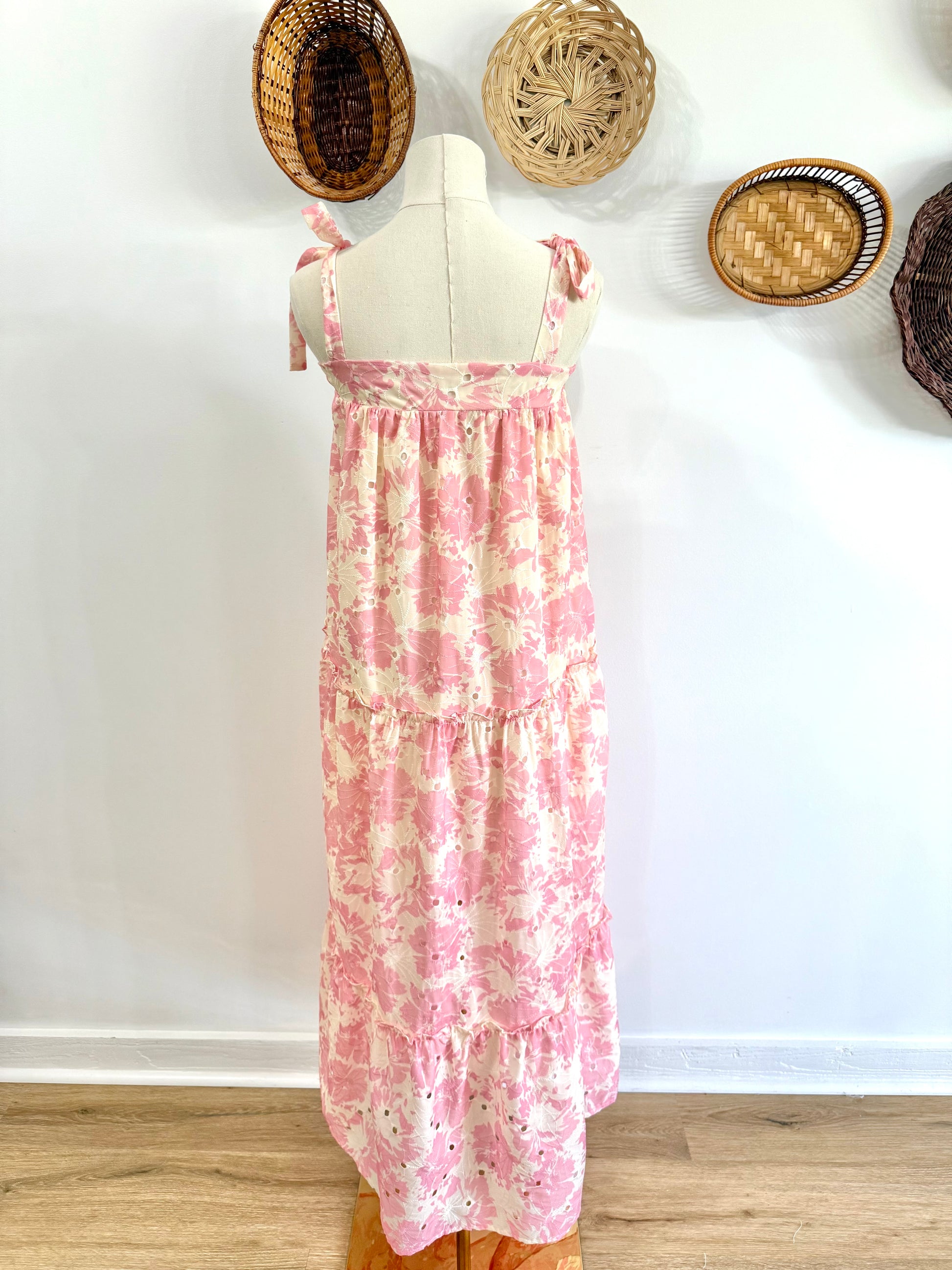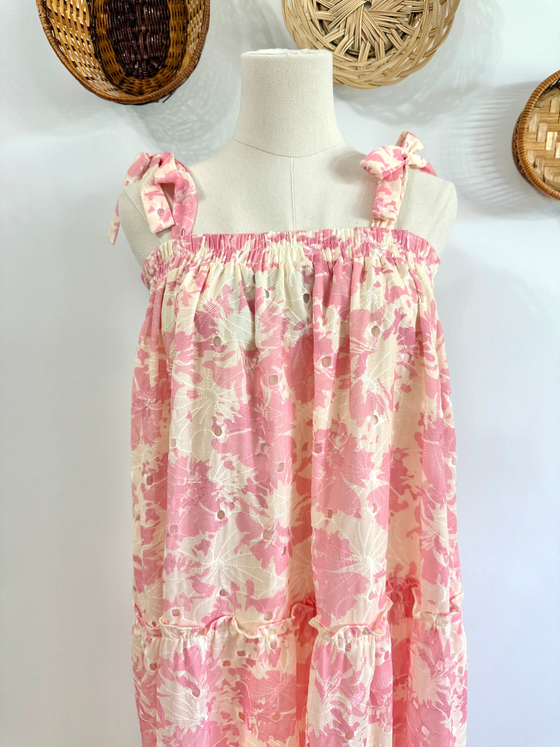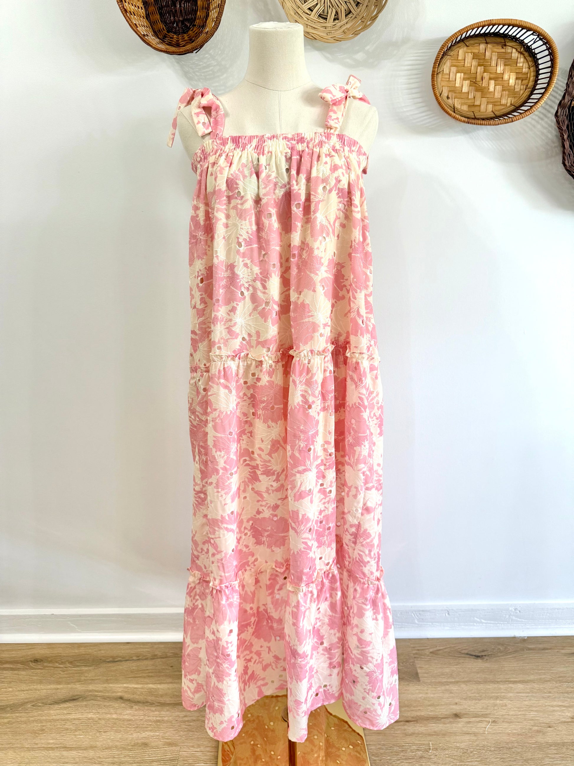 The Vayla Floral Eyelet Tiered Maxi Dress in Pink